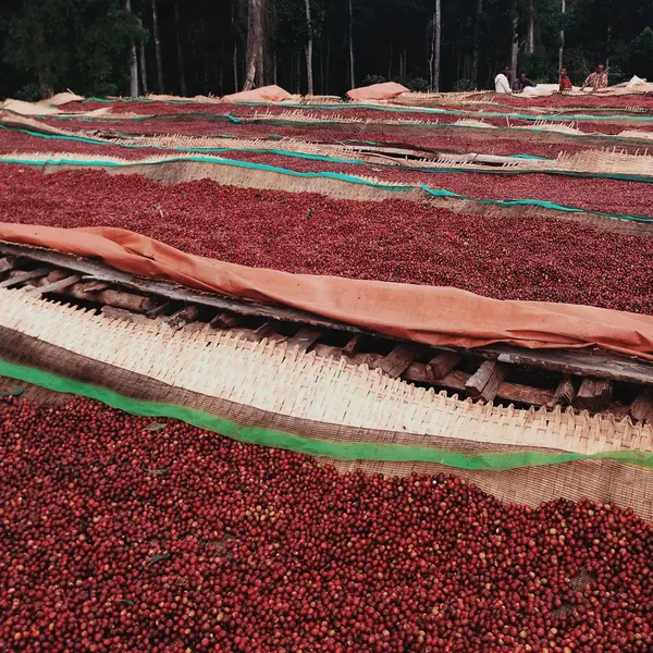 This year’s Bloom Coffee comes from Tigst Boru (Tee-gist Boh-roo), a dedicated woman farmer from Beloya, a small kebele (village) in the Kochere district of Gedio zone, Ethiopia, close to Yirgacheffe. At 1,705 meters above sea level, Tigst, a mother of 6 cultivates 2.8 hectares of heirloom Arabica varieties, Kumie, Dega and Wilsho, under the shade of native trees such as cordia africana, acacia, ensete and ventricosum.
