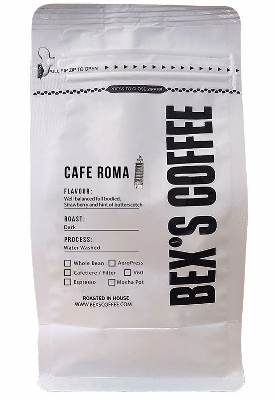 CAFE ROMA is a traditional coffee-producing area named after the great city of Roma in Italy. Using a dark roasted bean it delivers the expected rich and full-bodied coffee, especially in your traditional cups, Macchiato, Espresso and Cappuccino. Region: Roma, Italy