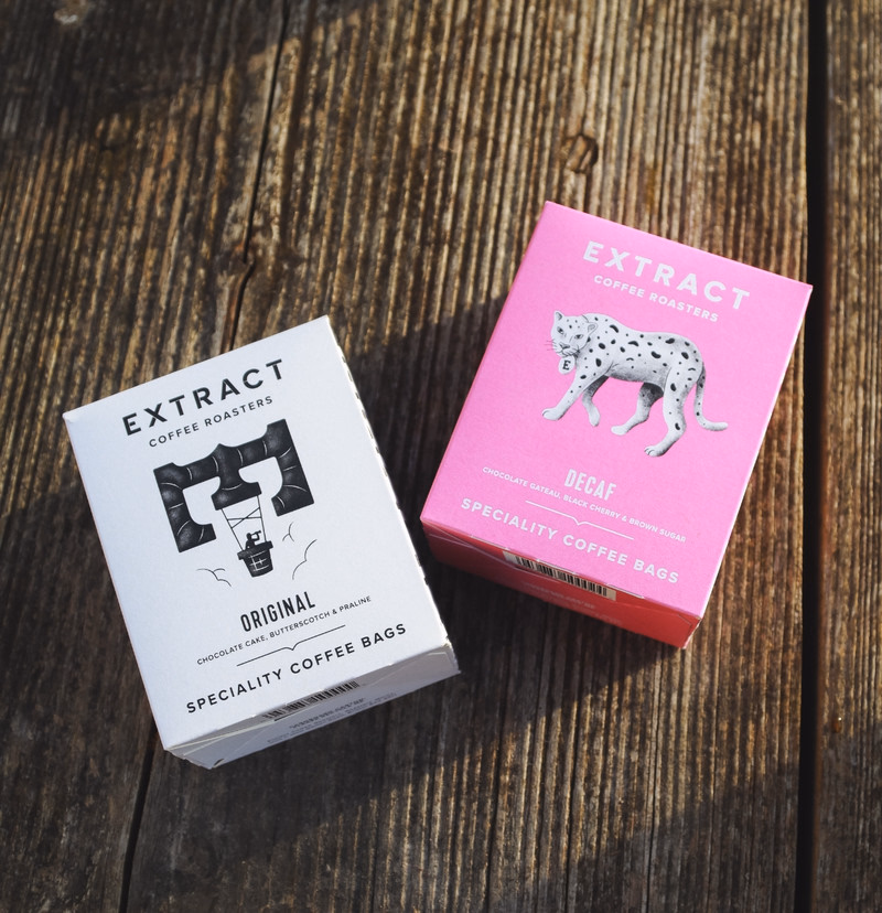 Drink Extract coffee anywhere with our new range of coffee bags. Now available in two favourites, Original & Decaf. Our talented team has carefully roasted the coffees to showcase their unique profiles and flavours.