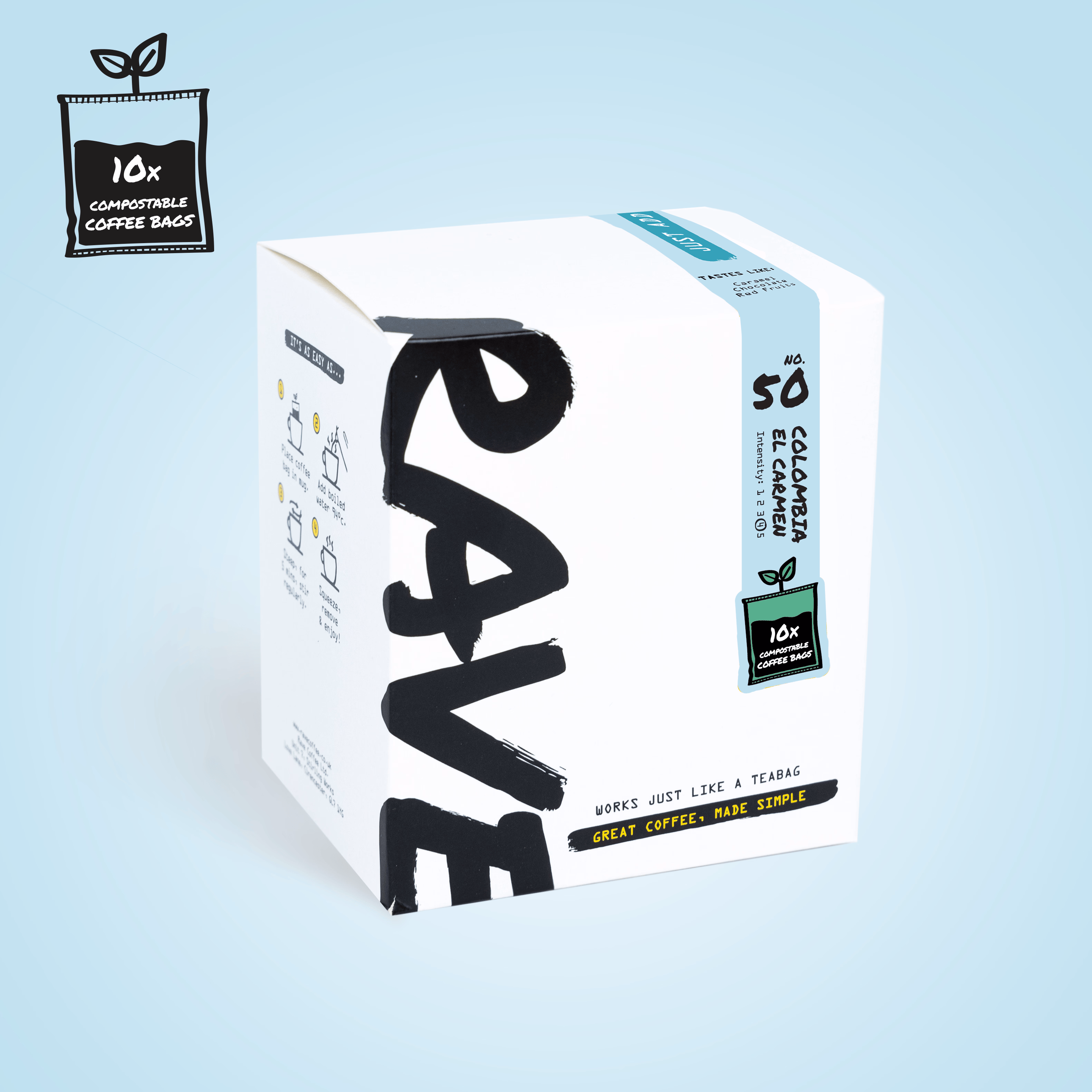 Could this be the most convenient and best cup of speciality coffee you have ever had? Our new compostable coffee bags make drinking Rave coffee simple. They work just like a tea bag so no fancy brew equipment is needed - simply add boiling water & wait 3 minutes.
