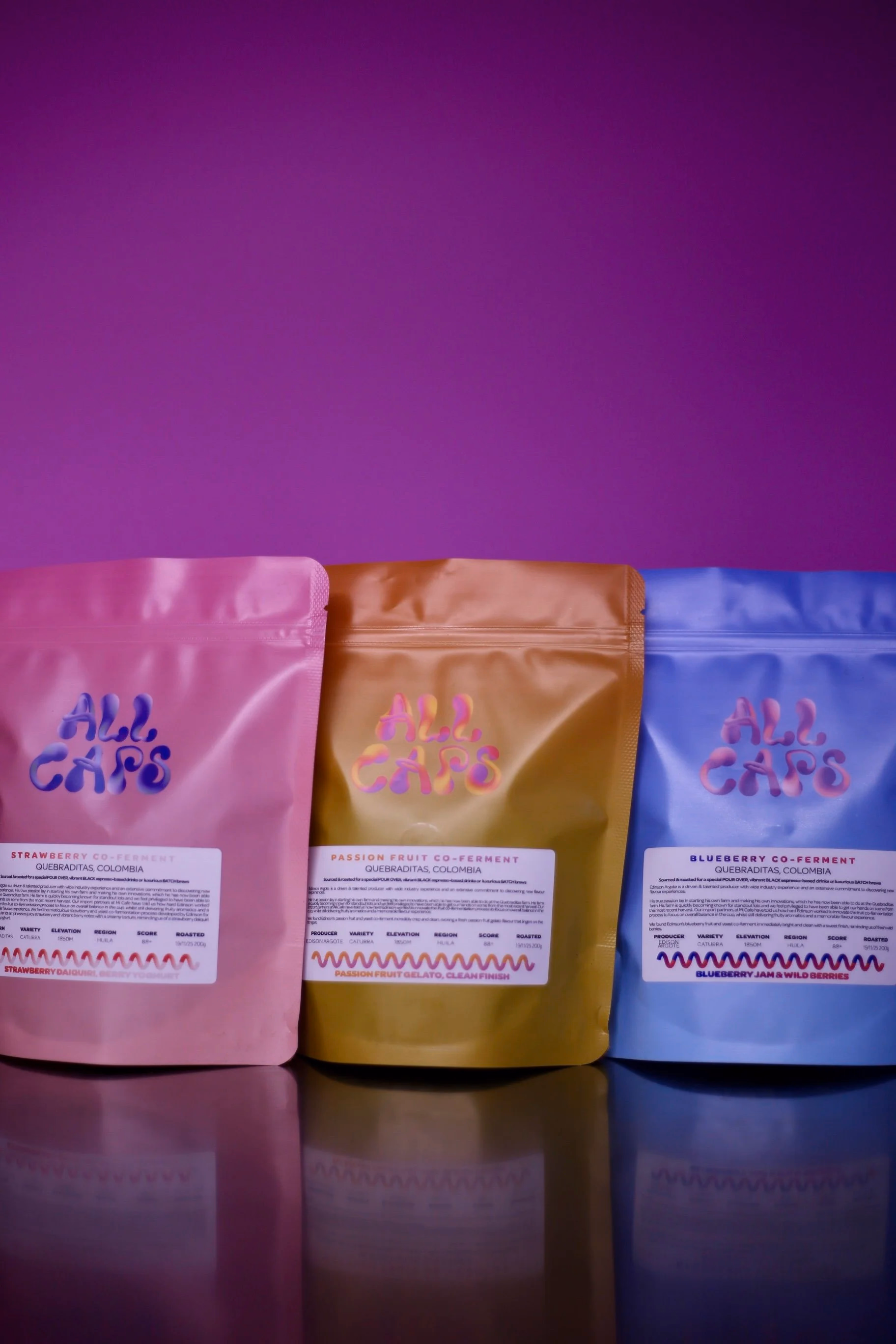 These 3 co-fermented coffees were grown by Edinson Argote