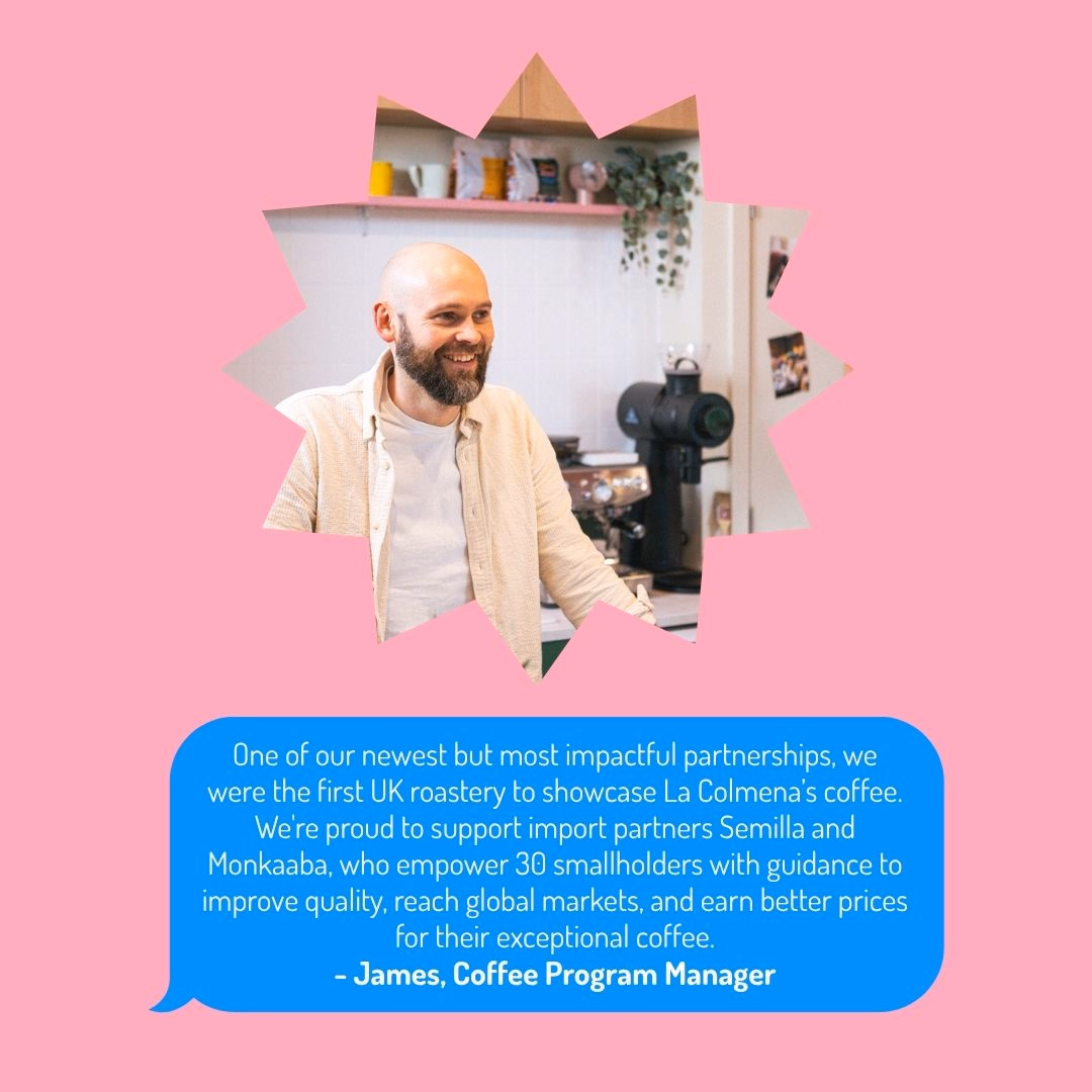 A beautiful, syrupy washed lot comprising of coffee grown by producers of La Colmena, a close knit community of coffee producers based in San Agustin, Huila. This field blend offers a mixture of high potential varietals that results in a tasty, complex coffee with real depth in character.