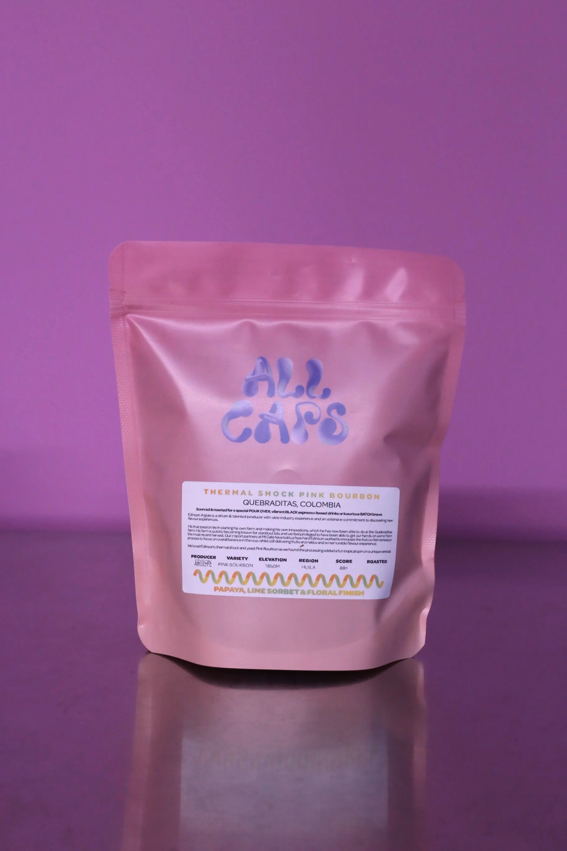 We loved Edinson's thermal shock and yeast Pink Bourbon as we found the processing added a fun tropical spin on a unique varietal.