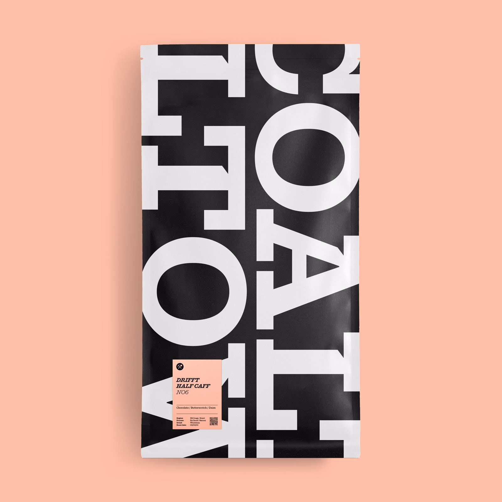Drifft Half Caff No.6 combines two exceptional coffees: 50% decaf using the Ethyl Acetate Process, featuring beans from Brazil and DR Congo. and the other 50% using natural process coffee with beans from Brazil and Peru.