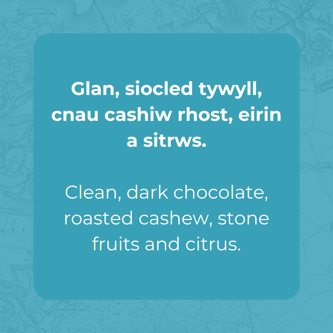 Clean, dark chocolate, roasted cashew, stone fruits and citrus.