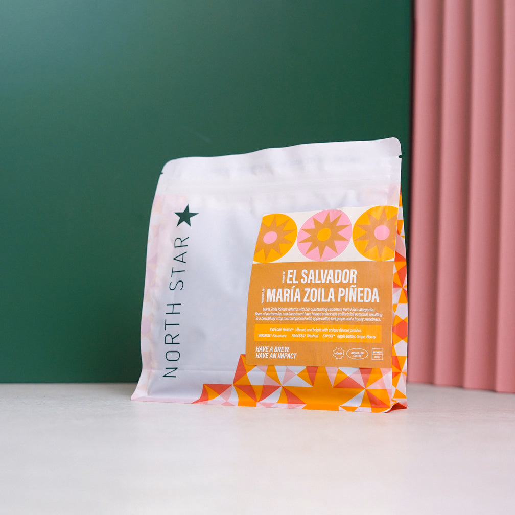 María Zoila Piñeda returns with her outstanding Pacamara from Finca Margarita. Years of partnership and investment have helped unlock this coffee's full potential, resulting in a beautifully crisp microlot packed with apple butter, tart grape and a honey sweetness.