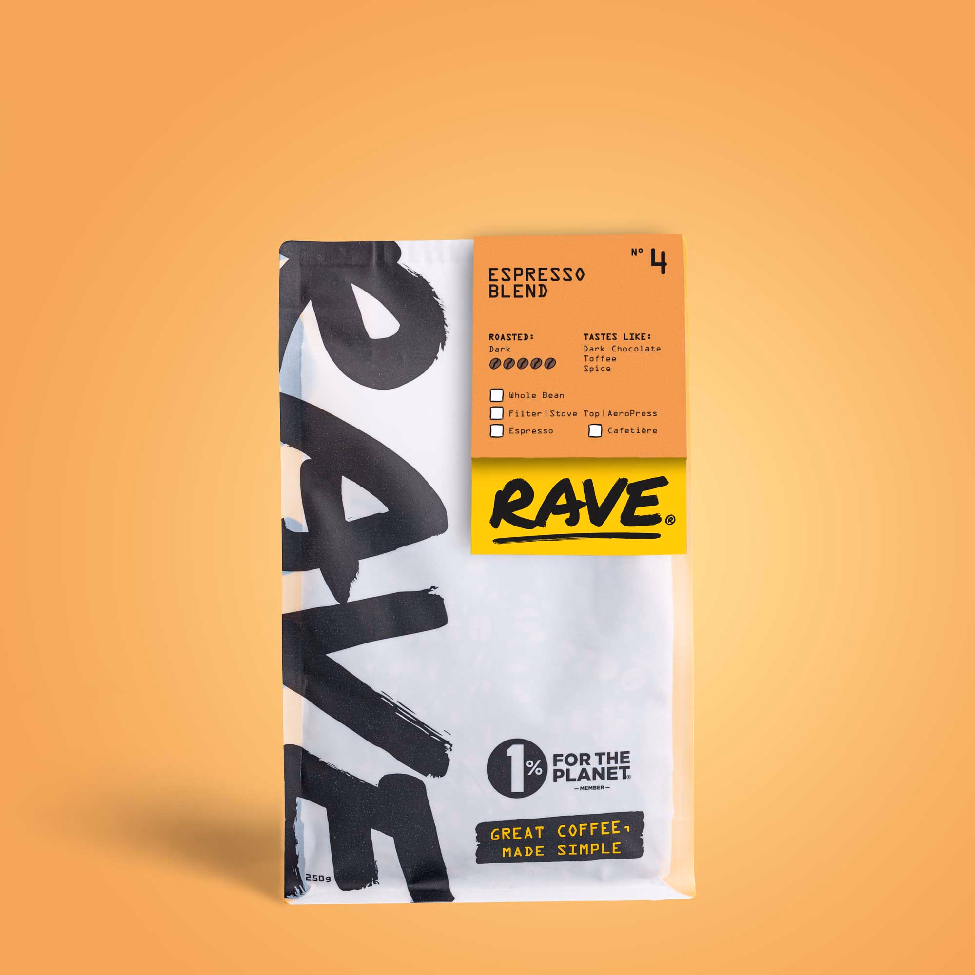 Our Wholesale-only Espresso Blend has proven so popular we had to release it for everyone. Sweet and balanced with notes of toffee, dark chocolate and cinnamon spice.