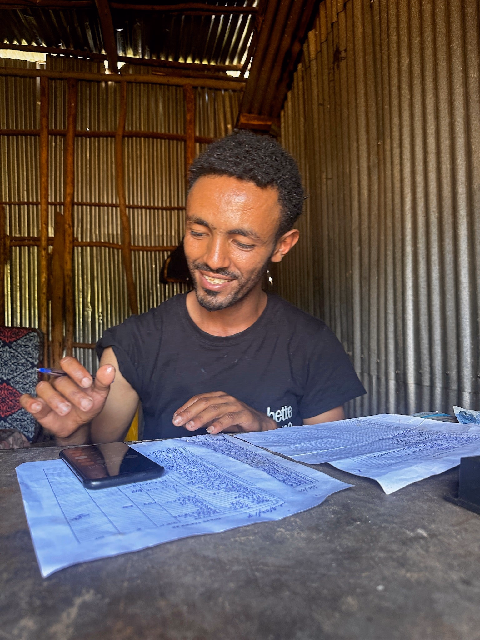 This lot is named for Haile (pictured above, far right), one of Dawit’s many cousins. Haile originally trained as a priest with the desire to bring hope to his home village of Taferi Kela. After Bette Buna was formed, however, he recognised its potential for community change and decided to learn how to bless others through coffee instead. He’s now a mill team leader for Bette Buna and oversees much of the processing of their cherry.
