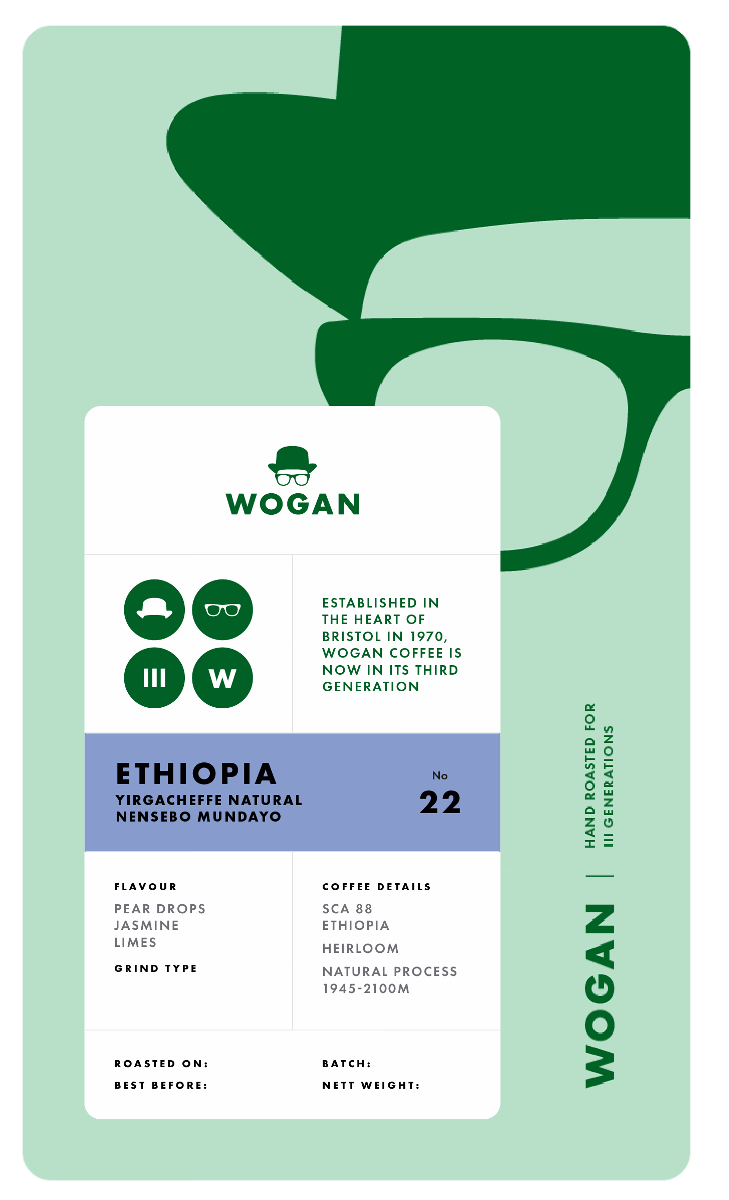 Welcome to our Ethiopian Natural - we rotate the farm slightly every so often to experiment, but always stick to a Yirgacheffe.