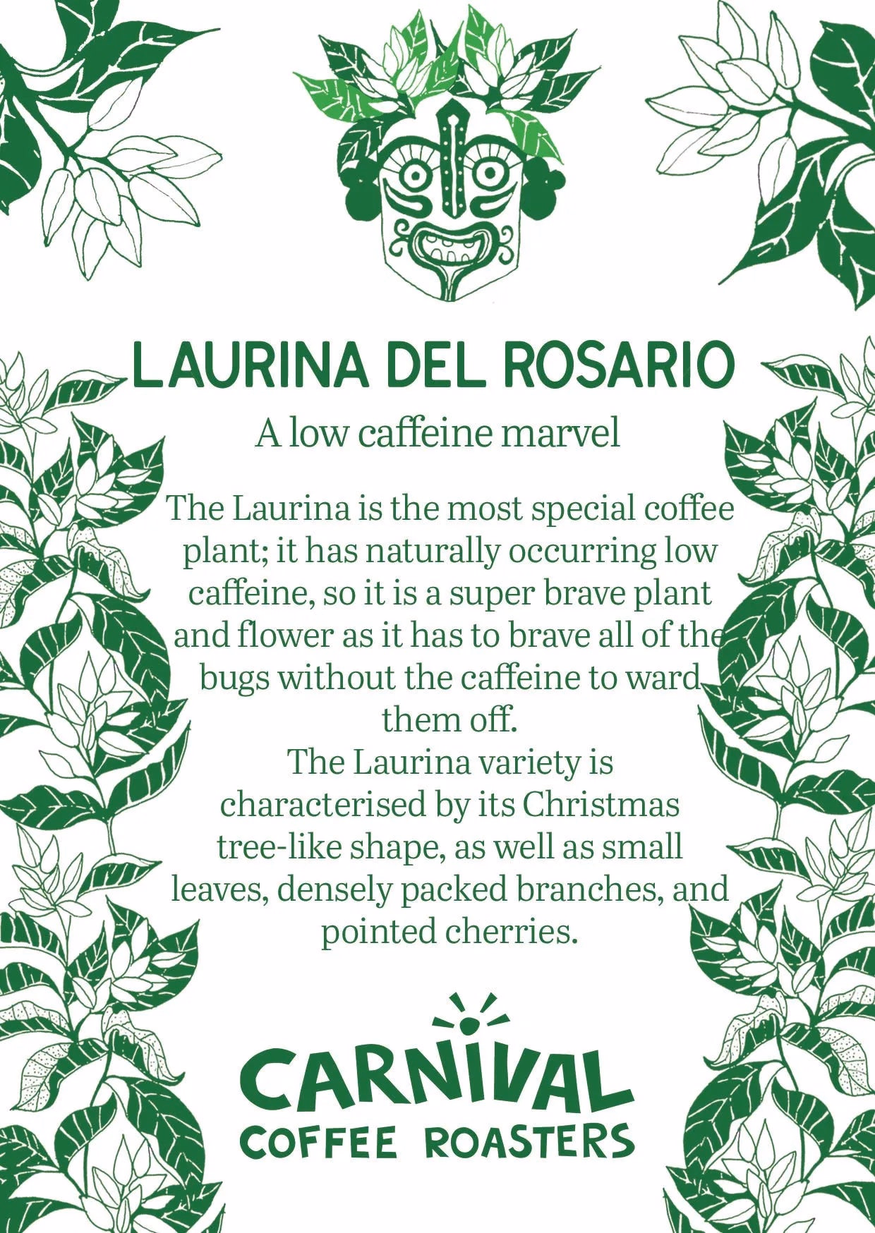 Laurina’s naturally low caffeine — about 50% less than most Arabicas — evolved at high altitudes where the plant produced less caffeine over time.