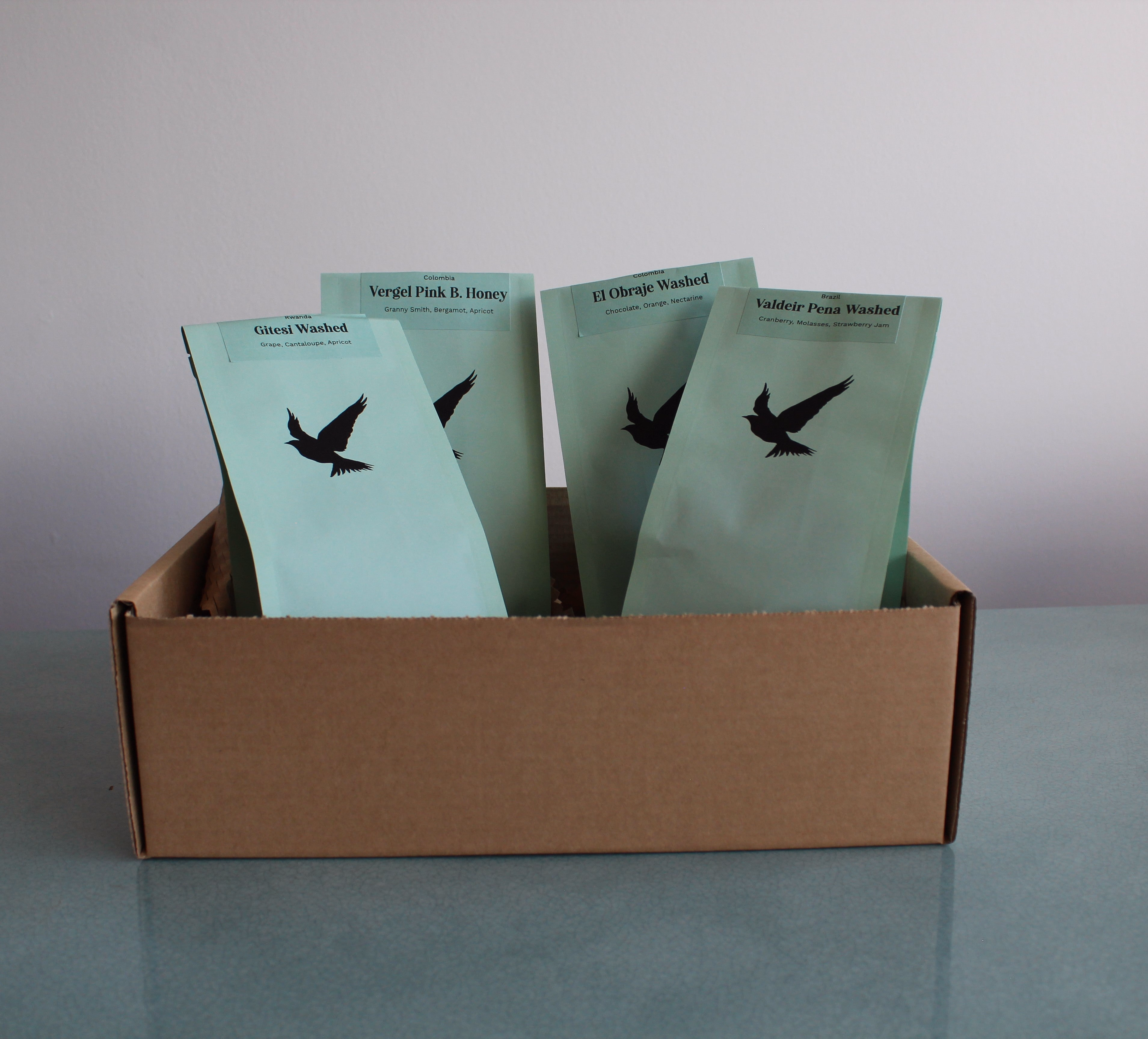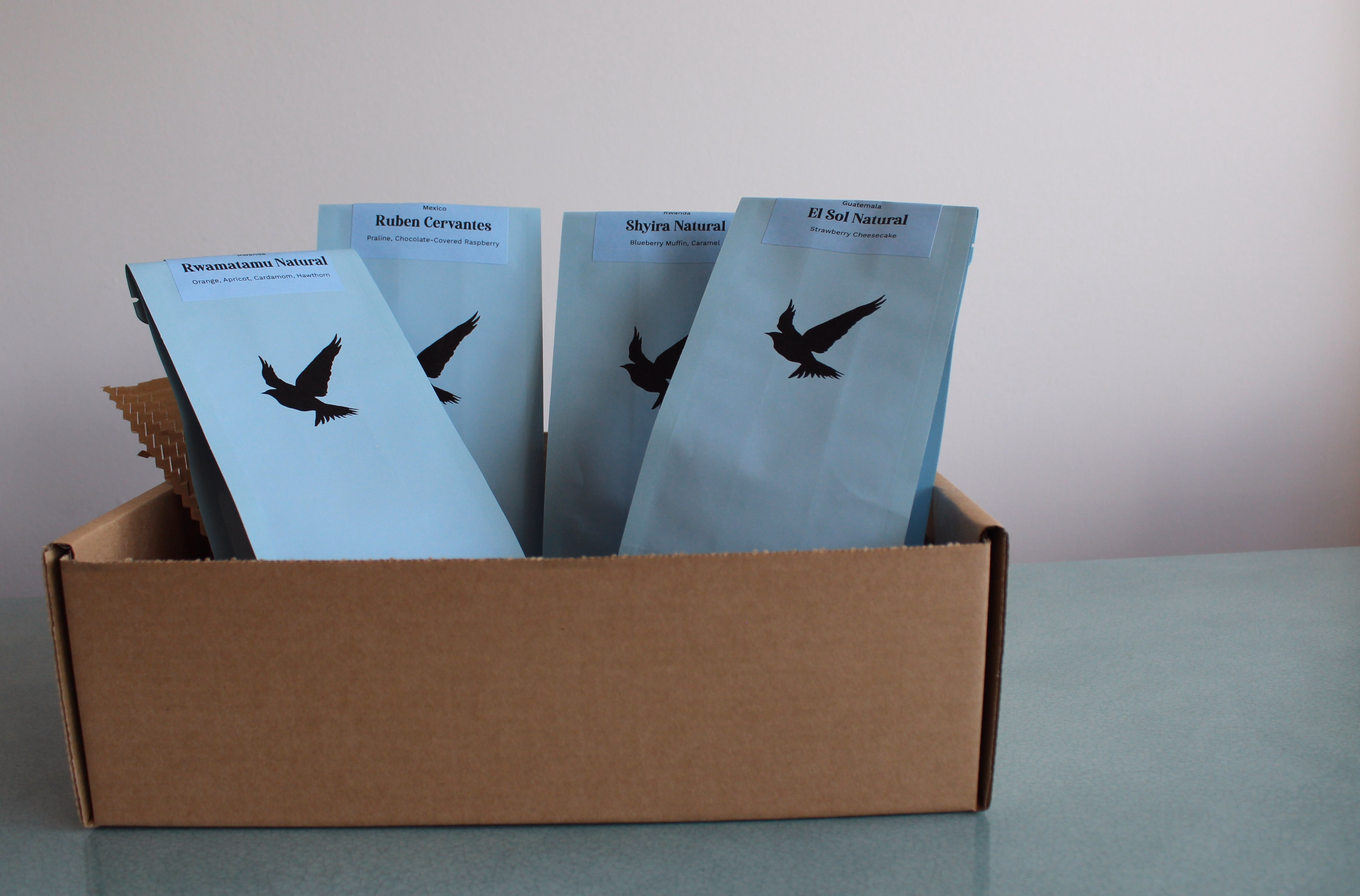 Here's the deal: we'll send you 4 half-bags (125g) of our favourite single origin coffees. There should be enough in each packet for around 2 litres of coffee, so there's plenty of each to share with friends and family.
