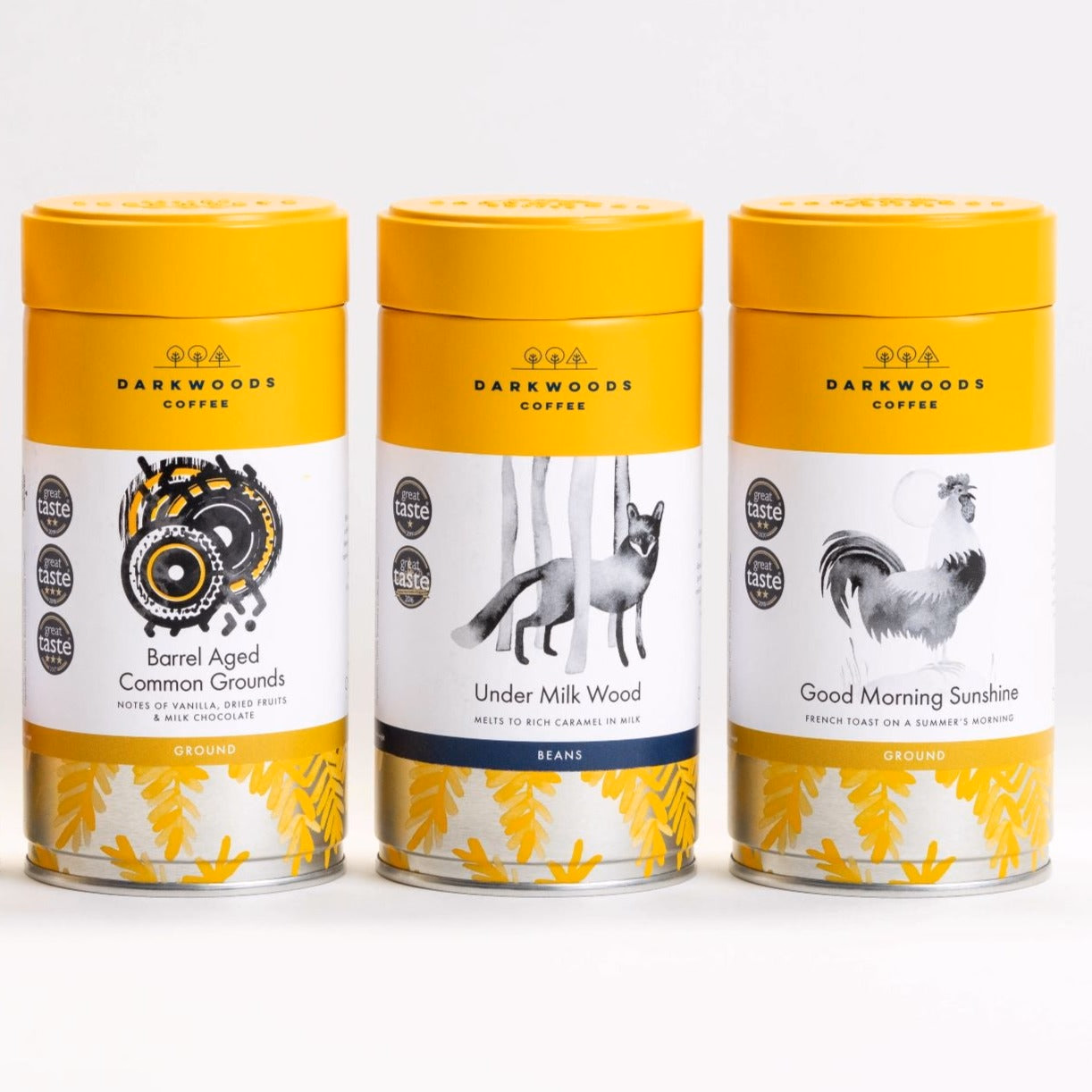 Our award winning Common Grounds, Under Milk Wood & Good Morning Sunshine all together in 150g Gift Tins.