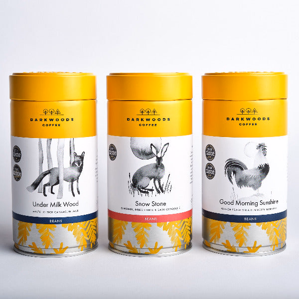 A seasonal version of our triple tins featuring our winter blend Snow Stone, as well as Under Milk Wood & Good Morning Sunshine all together in 150g Gift Tins.