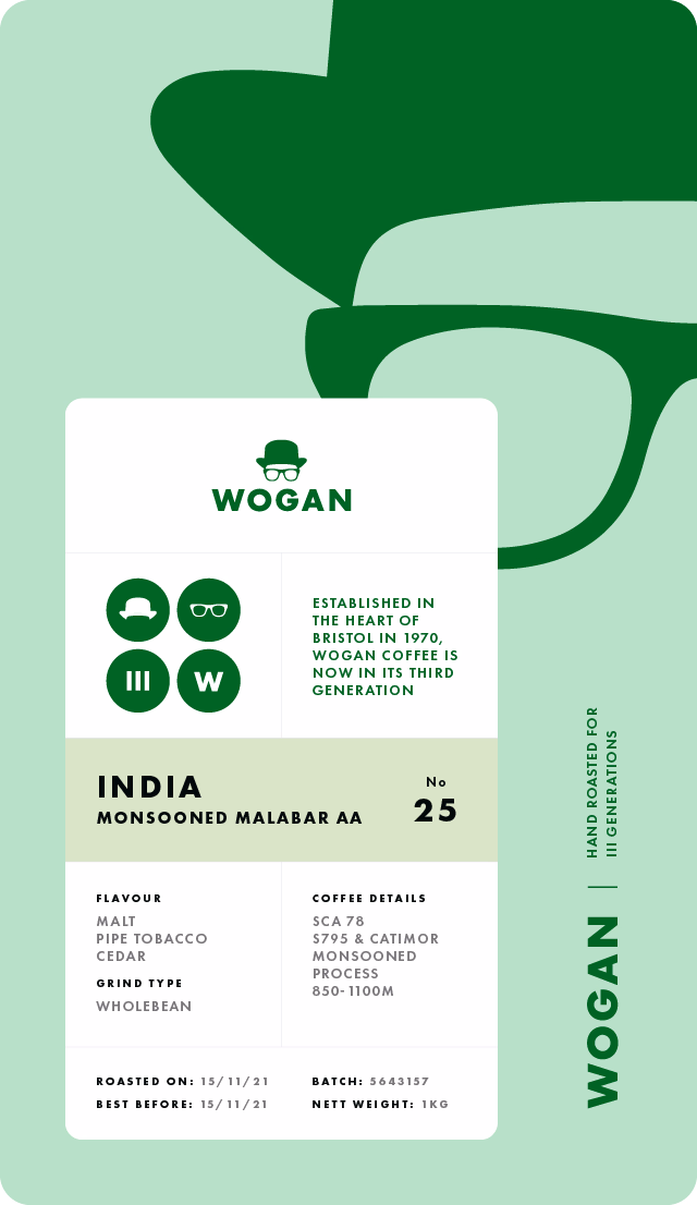 Light in colour, this coffee has a mellow body, with a smooth and malty finish. Monsooned Malabar uses a very distinctive processing method inspired by the shipment of coffee from India to Europe in the 19th Century.