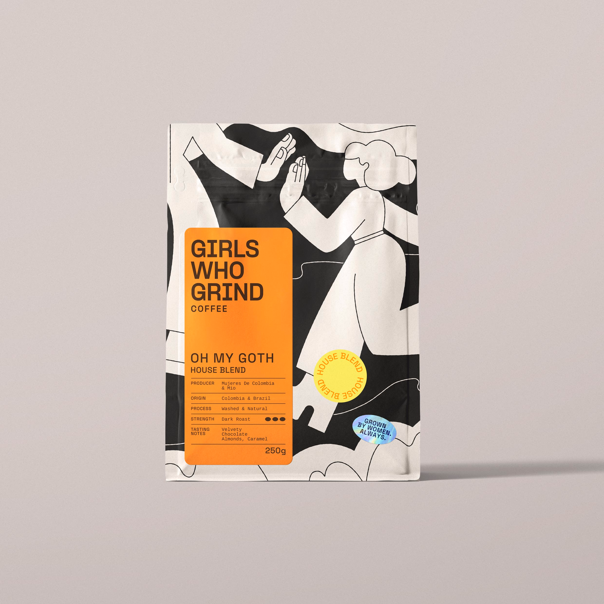 Oh My Goth, is our first official venture into a darker, more developed roast profile. Why? Well, you spoke, we listened. We’re not normally this submissive, but we do know that these darker roast profiles with more development make for incredible espressos and easier brewing.