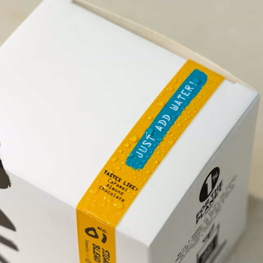 Each single serve coffee sachets has printed instructions for use.