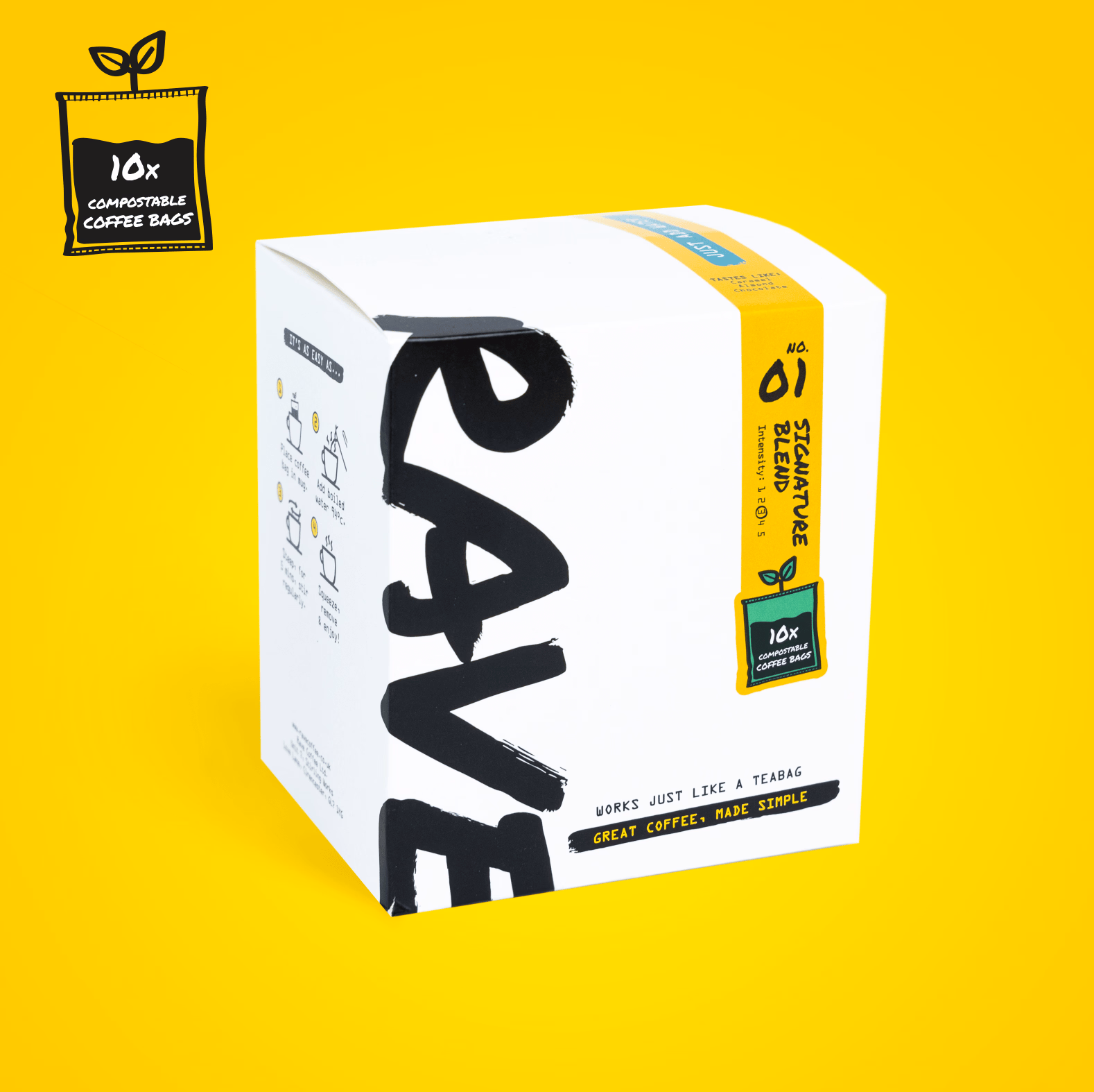 Could this be the most convenient and best cup of specialty coffee you have ever had? Our new compostable coffee bags make drinking Rave coffee simple. They work just like a tea bag so no fancy brew equipment is needed - simply add boiling water & wait 3 minutes.