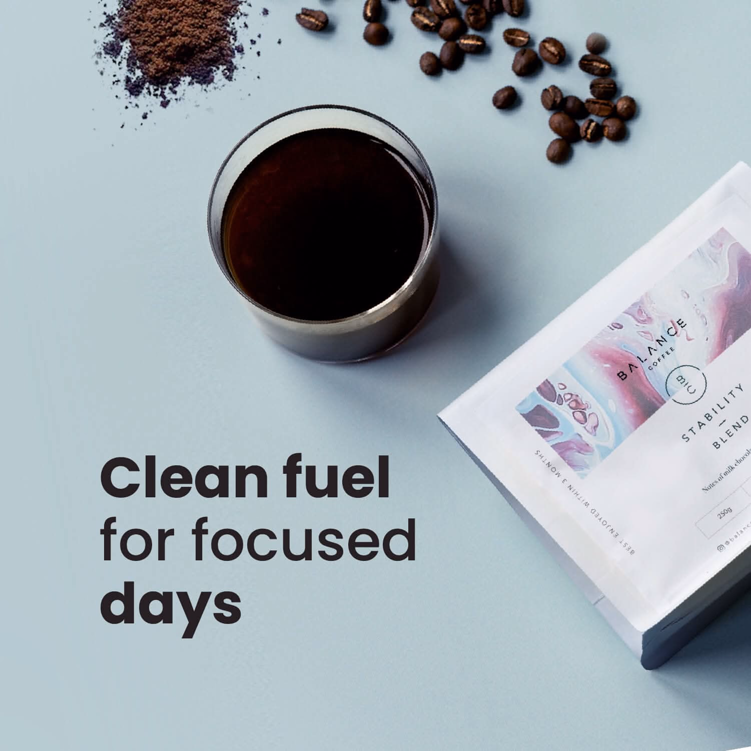 A smooth, balanced medium roast with notes of milk chocolate, hazelnut, and fig, crafted to deliver clean energy and calm, steady focus.