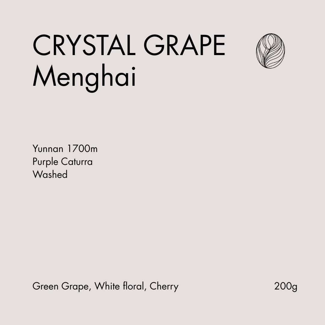Grown at 1700m in Menghai, Yunnan, this washed Purple Caturra showcases a clean and crystalline flavour profile — bright green-grape acidity, delicate white florals and a soft cherry sweetness.
